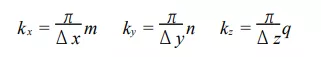 式中, m、n、q 為正整數(shù); 而波矢 k 的三個(gè)分量為