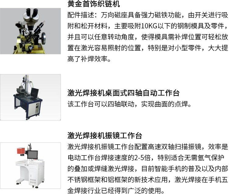 通發(fā)激光研發(fā)針對配合黃金織鏈機、K金制鏈機、首飾織鏈機、項鏈織鏈機的TFL-40PF自動光纖激光焊接機,焊接機采用能量反饋技術,光點穩(wěn)定,能量強勁,便與安裝,實現(xiàn)一環(huán)一焊的功能,確保金鏈的耐拉強度,可以廣泛應用在點焊及柔性加工需求行業(yè)等焊接。本激光焊機實現(xiàn)了風冷一體的小型化結構。適用于各種生產場所。