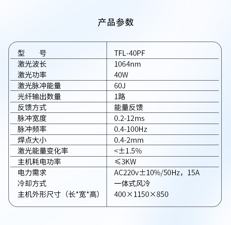 1、該設備采用升壓電源,不受電網波動影響,同時電源的單點能量輸出能力也更強。