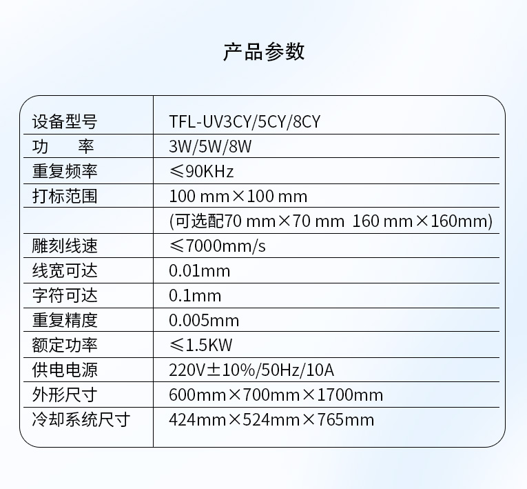 通發(fā)紫外激光打標(biāo)機(jī)技術(shù)參數(shù):