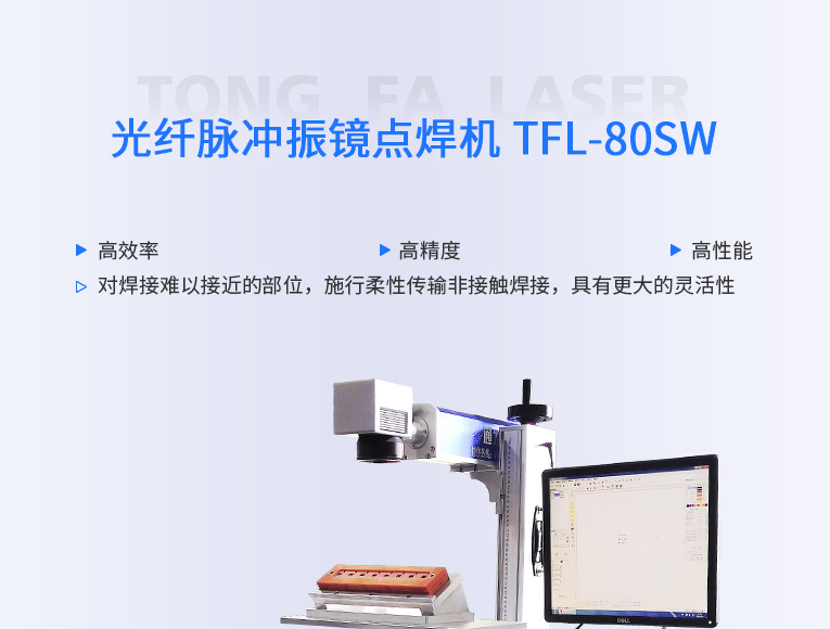 通發(fā)激光TFL-80SW振鏡激光焊接機,采用主振蕩器功率放大 MOPA(Masrer Qscillator Power Amplifier)結構,實現(xiàn)脈沖寬度和頻率獨立可調的特點,在對脈寬和頻率進行改動的情況下仍保持較高且穩(wěn)定的峰值功率輸出,適用于電池、小五金等多個行業(yè)的激光打標、激光焊接應用。