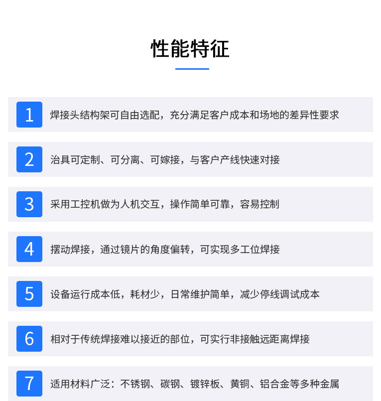 2、強大的PC控制,易于編程、調試和維護??赏瓿勺詣踊虬胱詣拥狞c焊、對接焊、疊焊、密封焊,針對復雜的平面直線、圓弧及任意軌跡的焊接。